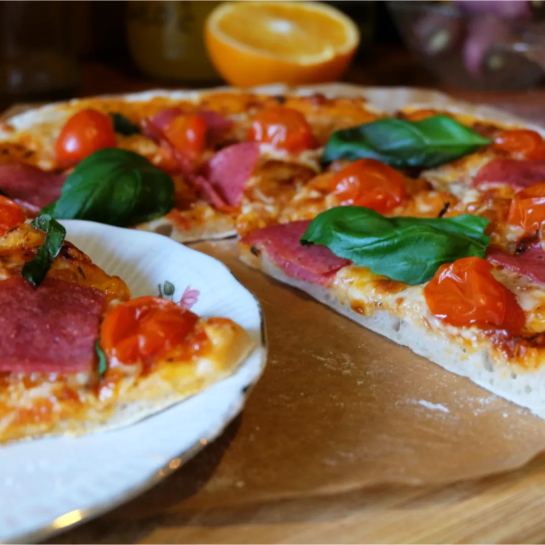 Pizza Aragon belegt mit Tomaten Soße, 100% Rindersalami und Käse.