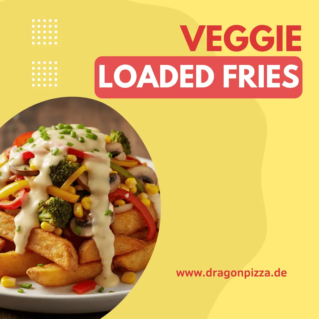 Veggie Loaded Frites – Steak Pommes mit Brokkoli, Paprika, Zwiebeln, Champignons und Mais.