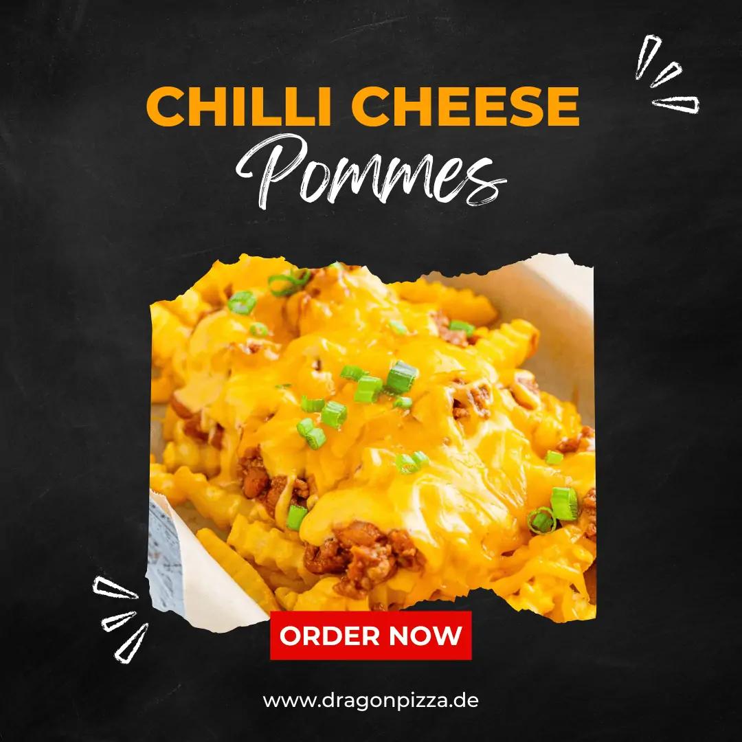 Chilli Cheese Pommes (mit Käse Ãberbacken): Steak Pommes mit JalapeÃos und Cheese-Soße, zusÃtzlich mit KÃse Ãberbacken.